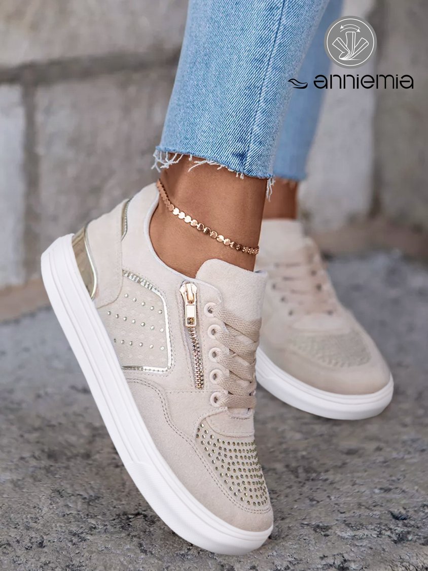 • Apricot Rhinestone Zipper Decor Lace-Up Skate Shoes CN112