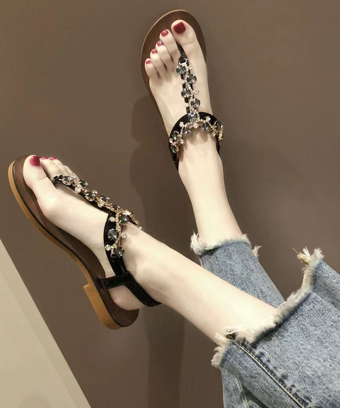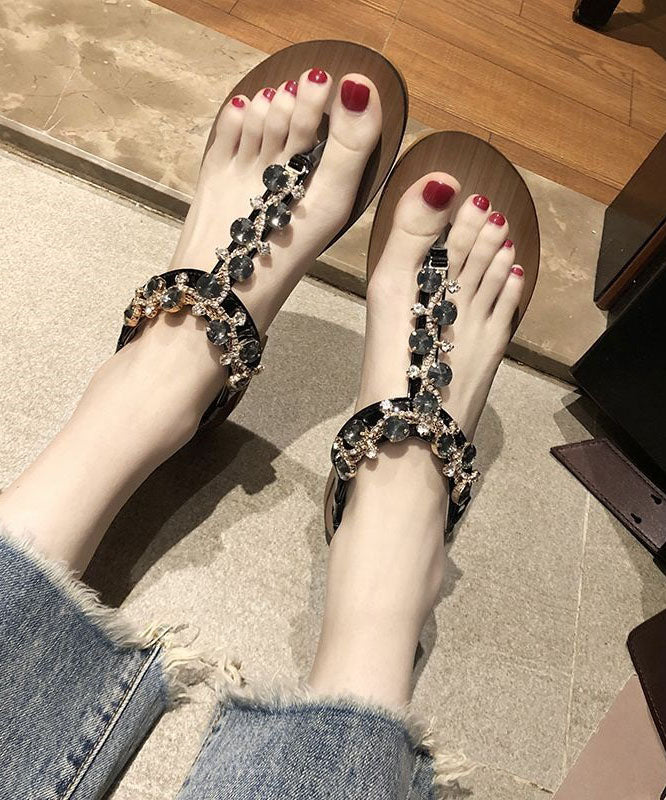 Black PU Splicing Zircon Beach Flip Flops Walking Sandals