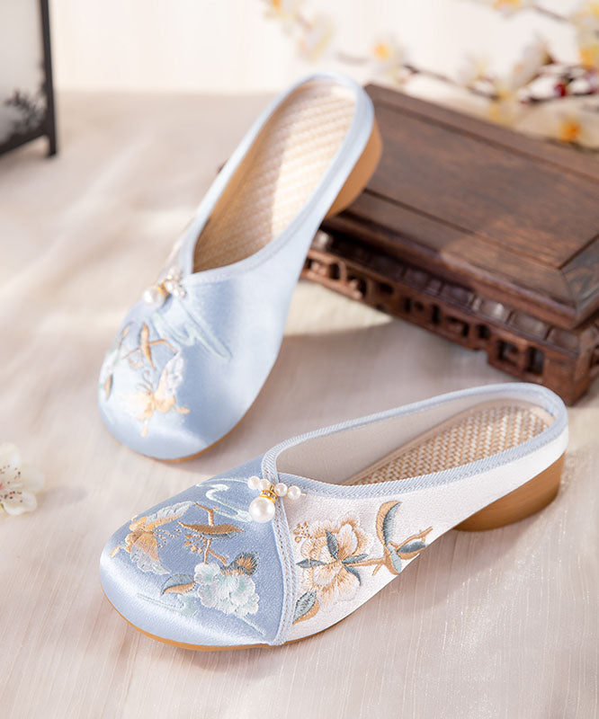 • Blue Embroideried Slippers Shoes Women Splicing Cotton Fabric LY7688
