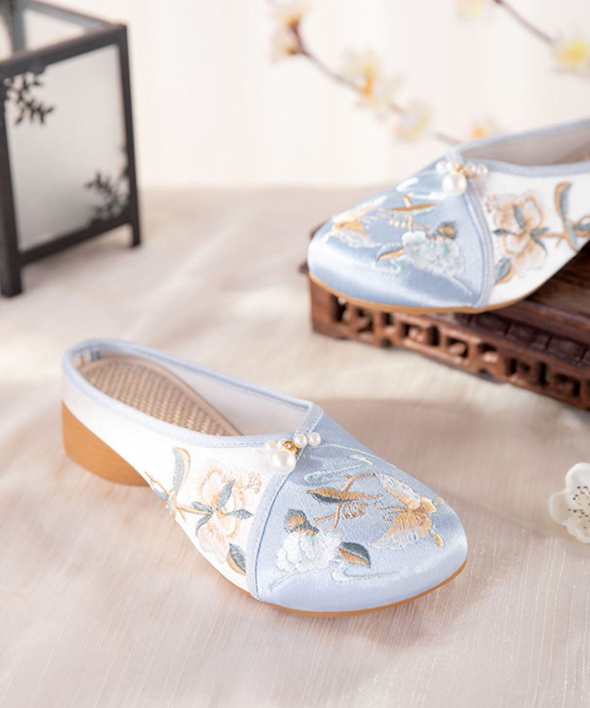 Blue Embroideried Slippers Shoes Women Splicing Cotton Fabric