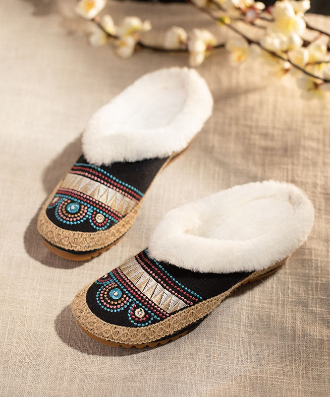-Linen Fabric Upper.Fuzzy Wool Lined