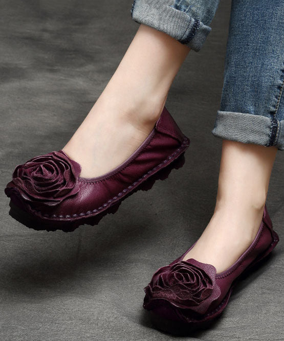 • Handmade Floral Splicing Flats Red Cowhide Leather Penny Loafers LY7601