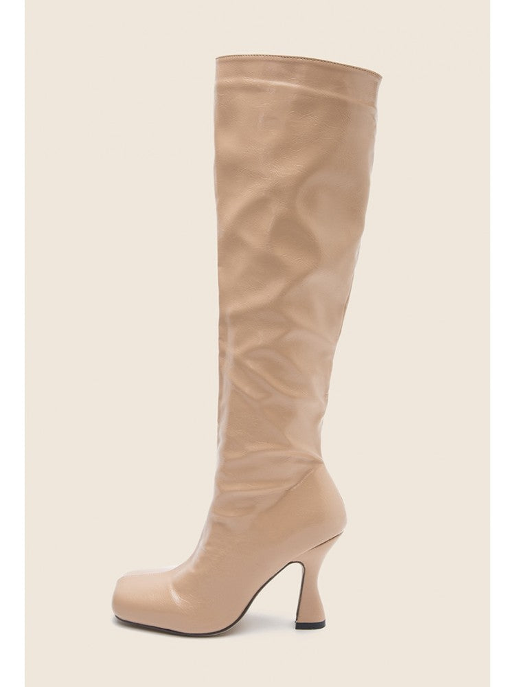 PU Ruched Square Toe Long High Boots